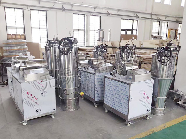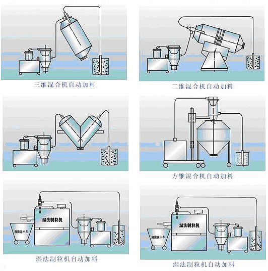 該機是國內合適、完善的粉狀料、粒狀料、粉粒料混合料的真空輸送設備。真空上料機能自動地將各種物料輸送到包裝機、注塑機、粉碎機等設備的料斗中,也能直接把混合的物料輸送到混合機(如V型混合機、二維混合機、三維混合機等)中,減輕了工人勞動強度,解決了加料時粉塵外溢等問題,是制藥廠、促進清潔、文明生產的設備。